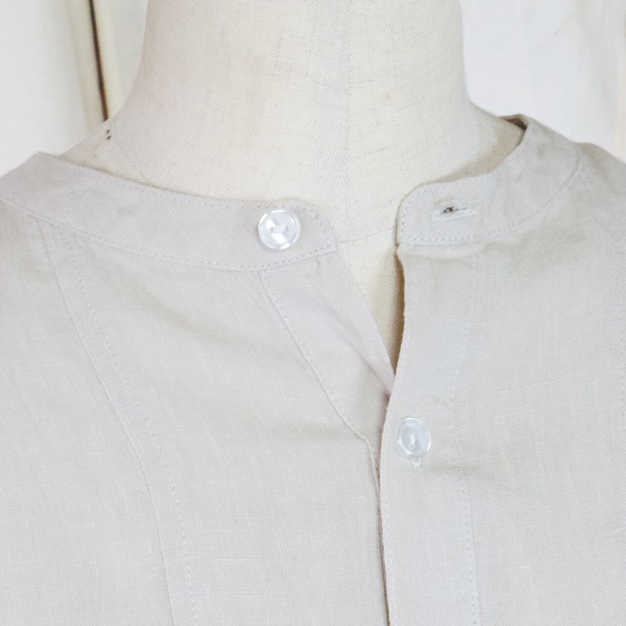 胸にシンプルな切り替えの有るバンドカラーシャツです。